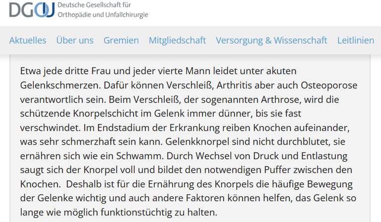 Was die Deutsche Gesellschaft für Orthopädie und Unfallchirurgie (DGOU) wirklich über Gelenkschmerzen sagt.